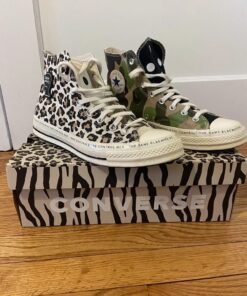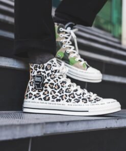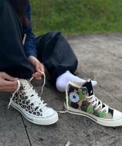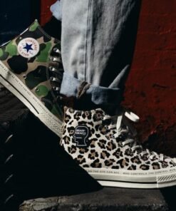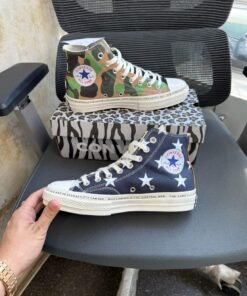 Level up your sneaker game with the eye-catching Cnvrs Chuck 70 Split Edition, combining two iconic prints – military camo on one shoe and star-spangled navy on the other. This high-top sneaker set isn’t just footwear—it’s a wearable conversation piece, made for those who stand out from the crowd.
