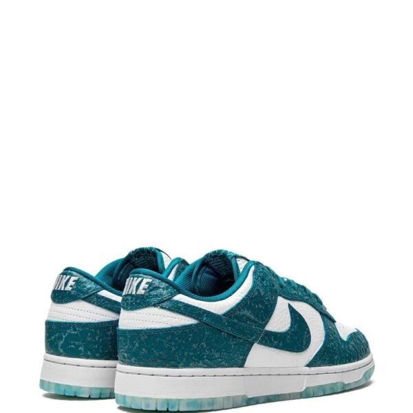 The Dunk Low “Ocean” sneakers feature an aquatic teal on the upper and a translucent outsole that remembers the bodies of the water that comprise most of the planet. This pair is crafted from a white leather base while some textured panels cover the rest for a natural appeal. On the tongue, the logo patch comes with a pattern of water that reflects on the ocean’s floor.